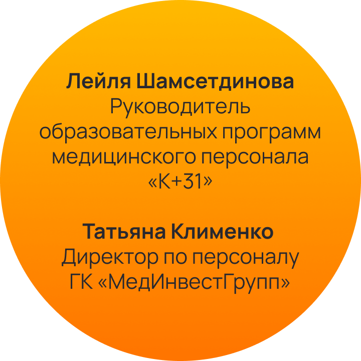 Лейла Шамсетдинова, Руководитель образовательных программ медицинского персонала «К+31» | Татьяна Клименко, Директор по персоналу ГК «МедИнвестГрупп» |