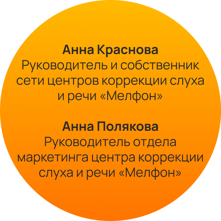 Анна Краснова, Руководитель и собственник сети центров коррекции слуха и речи «Мелфон» | Анна Полякова, Руководитель отдела маркетинга центра коррекции слуха и речи «Мелфон» |