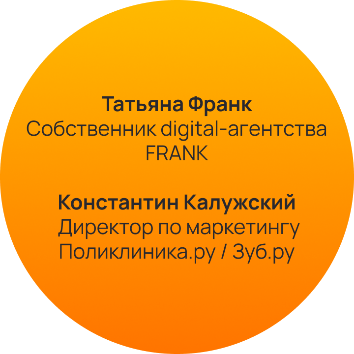Татьяна Франк, Собственник digital-агентства FRANK | Константин Калужский, Директор по маркетингу Поликлиника.ру / Зуб.ру |
