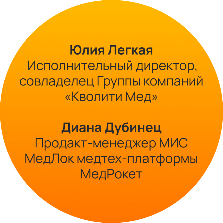 Юлия Легкая, Исполнительный директор, совладелец Группы компаний «Кволити Мед» | Диана Дубинец, Продакт-менеджер МИС МедЛок медтех-платформы МедРокет |