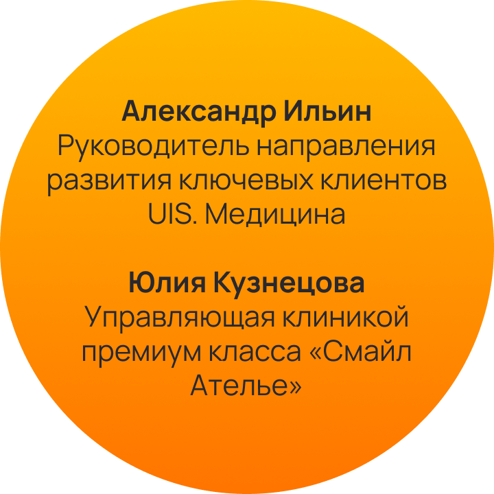 Александр Ильин, Руководитель направления развития ключевых клиентов UIS. Медицина | Юлия Кузнецова, Управляющая клиникой премиум класса «Смайл Ателье» |