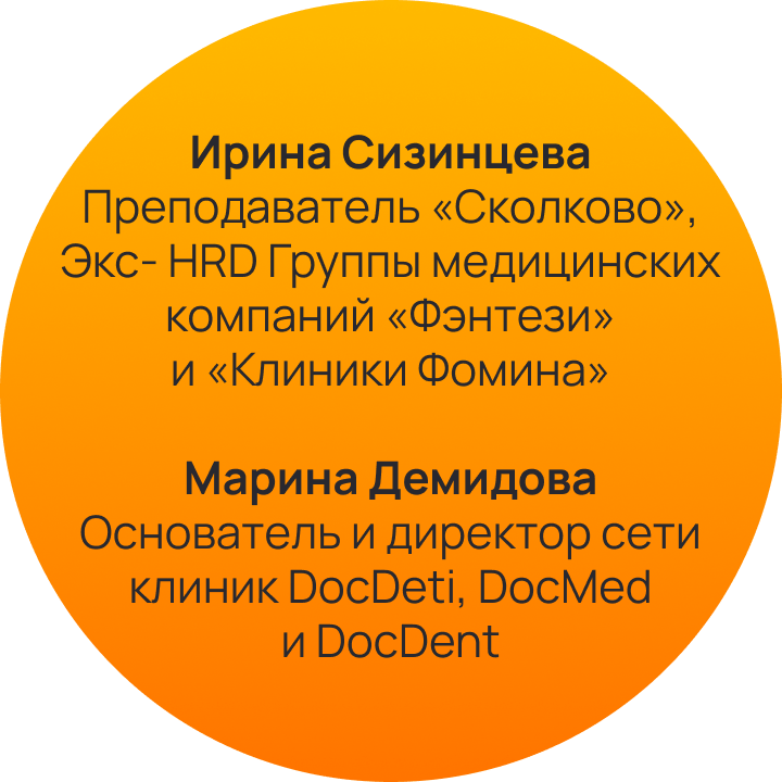 Ирина Сизинцева, Преподаватель «Сколково», Экс- HRD Группы медицинских компаний «Фэнтези» и «Клиники Фомина» | Марина Демидова, Основатель и директор сети клиник DocDeti, DocMed и DocDent |