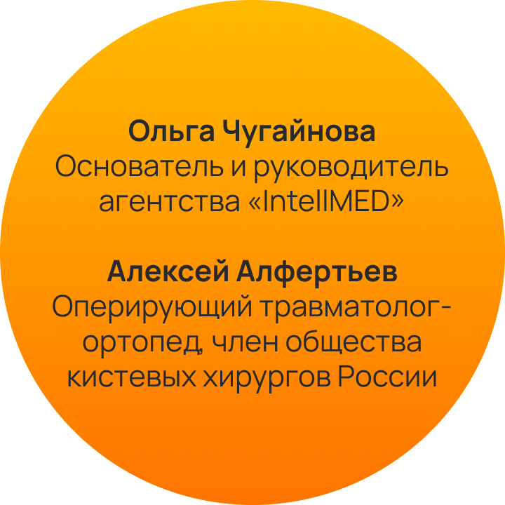 Ольга Чугайнова, Основатель и руководитель агентства «IntellMED» | Алексей Алфертьев, Оперирующий травматолог- ортопед, член общества кистевых хирургов России |
