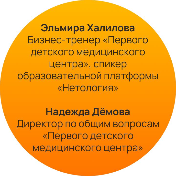 Эльмира Халилова, Бизнес-тренер «Первого детского медицинского центра», спикер образовательной платформы «Нетология» | Надежда Дёмова, Директор по общим вопросам «Первого детского медицинского центра» |
