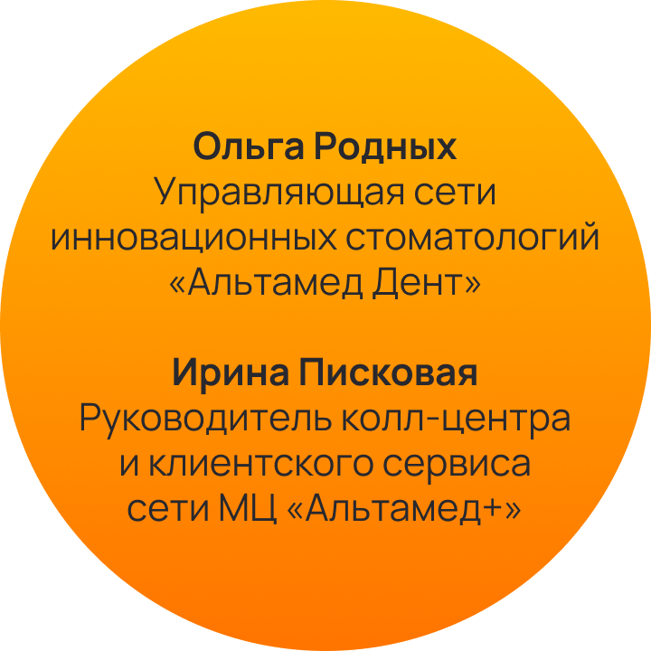 Ольга Родных, Управляющая сети инновационных стоматологий «Альтамед Дент» | Ирина Писковая, Руководитель колл-центра и клиентского сервиса сети МЦ «Альтамед+» |