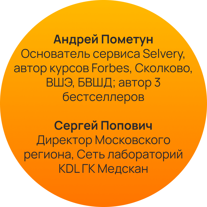 Андрей Пометун, Основатель сервиса Selvery, автор курсов Forbes, Сколково, ВШЭ, БВШД; автор 3 бестселлеров | Сергей Попович, Директор Московского региона, Сеть лабораторий KDL ГК Медскан |