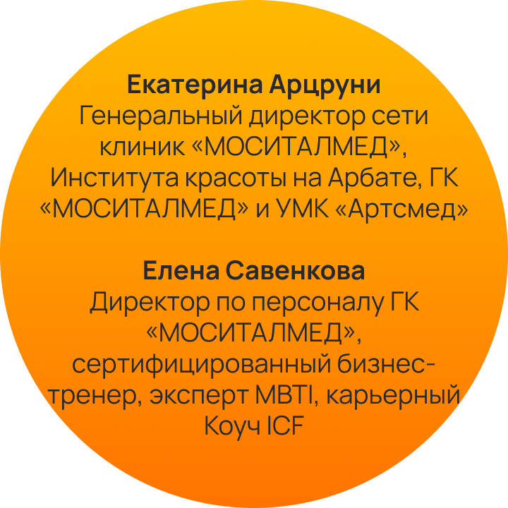 Екатерина Арцруни, Генеральный директор сети клиник «МОСИТАЛМЕД», Института красоты на Арбате, ГК «МОСИТАЛМЕД» и УМК «Артсмед» | Елена Савенкова, Директор по персоналу ГК «МОСИТАЛМЕД», сертифицированный бизнес-тренер, эксперт MBTI, карьерный Коуч ICF |